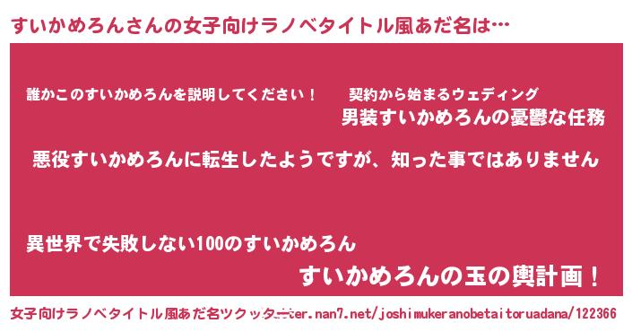 | 男性向けラノベタイトル風あだ名 | 『この素晴らしい世界にすいかめろんを!』 |