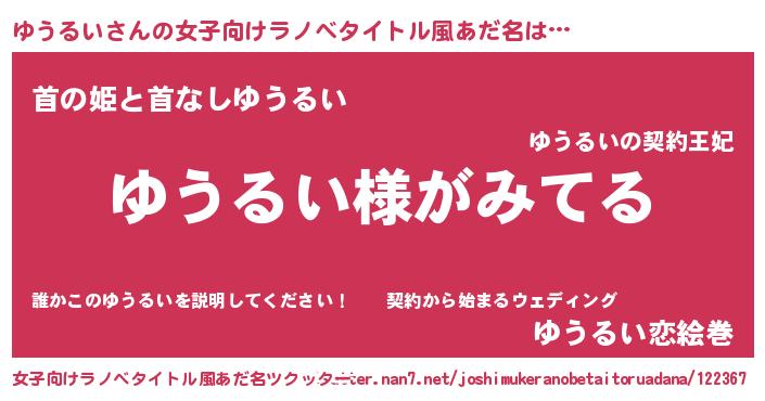 男性向けラノベタイトル風あだ名 | 『ゆうるいの嫁は女の子じゃないと思った?』 |