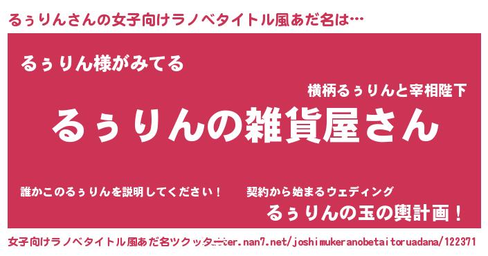 | 男性向けラノベタイトル風あだ名 | 『やはりるぅりんの青春ラブコメはまちがっている 』 |
