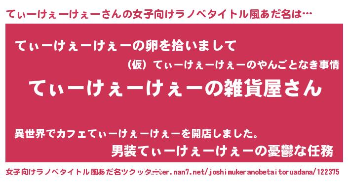 | ファンタジー風あだ名 | 『エターナルティーケェーケェーー』 |