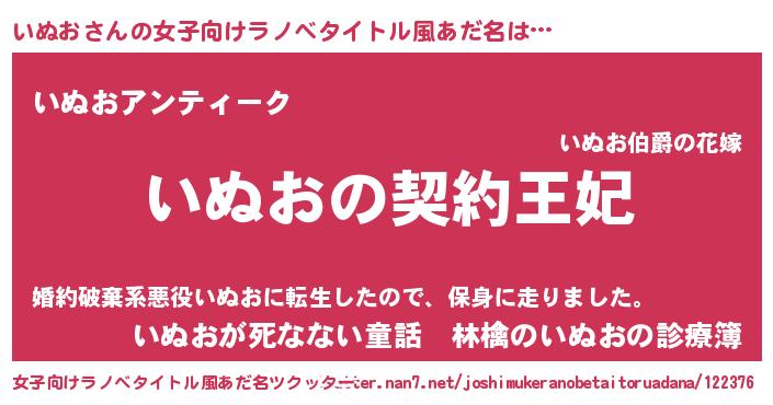 | 意味不明あだ名 | 『永久保存いぬお』『自称いぬお』 |