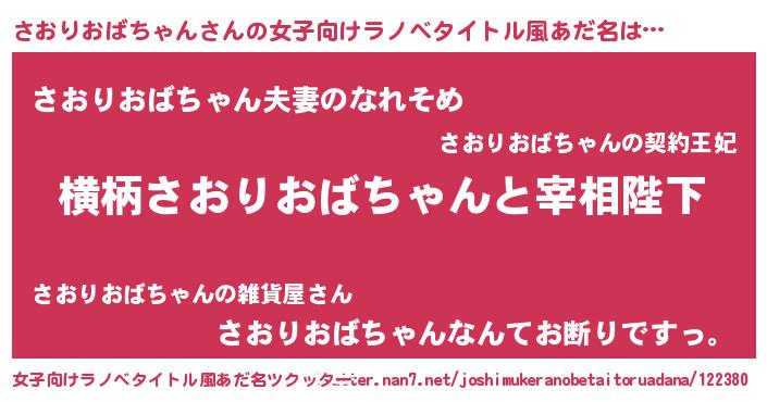 | 男性向けラノベタイトル風あだ名 | 『さおりおばちゃんに滅ぼされるだけの簡単なお仕事です』 |