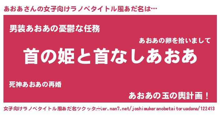 | 胡散臭い通販商品みたいなあだ名 | 『信頼と実績のサプリメント…その名も「あおあ」』 |