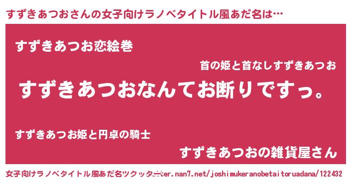 | 意味不明あだ名 | 『自称すずきあつお』 |