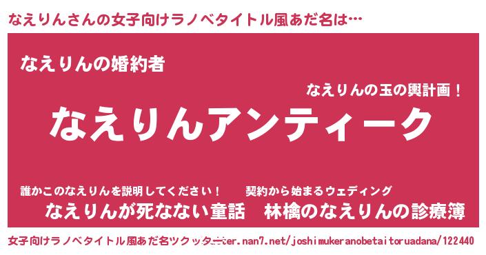 | 男性向けラノベタイトル風あだ名 | 『魔法科高校のなえりん』 |