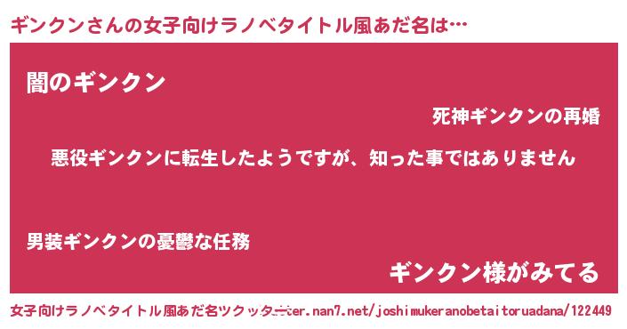 | ヒーロー風カッコイイあだ名 | 『仮面ギンダー』『最強戦士ギンクン』 |