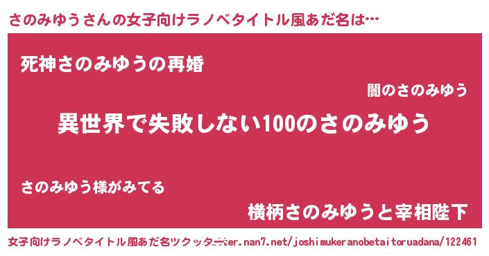 | 男性向けラノベタイトル風あだ名 | 『さのみゆうという概念が存在しない退屈な世界 』 |