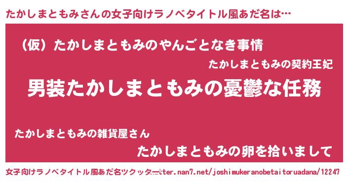 | 胡散臭い通販商品みたいなあだ名 | 『モテモテ間違いなし水晶球…その名も「たかしまともみ」』 |