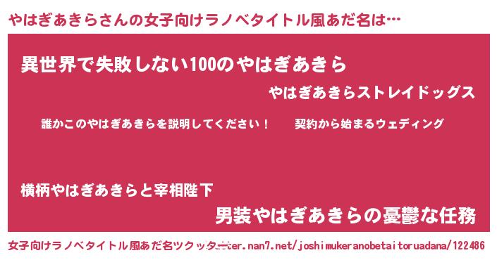 | 胡散臭い通販商品みたいなあだ名 | 『億万長者になれる水晶球…その名も「やはぎあきら」』 |
