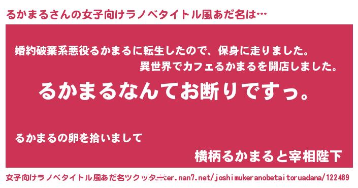 | ヘコむあだ名 | 『るかまる(苦笑)』『るかを』 |