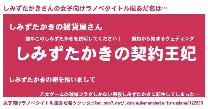 | 胡散臭い通販商品みたいなあだ名 | 『来世でも幸せになれる健康食品…その名も「しみずたかき」』 |