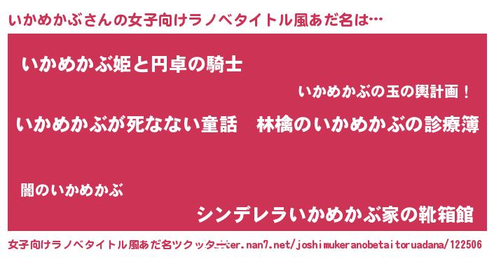 | 意味不明あだ名 | 『住所不定無職いかめかぶ(10歳)』 |