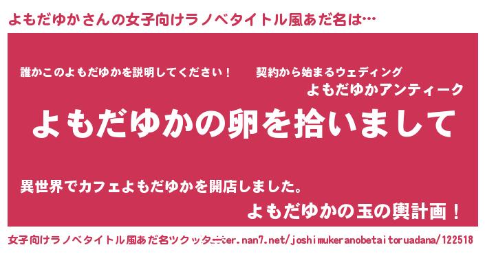 | 胡散臭い通販商品みたいなあだ名 | 『伝統あるサプリメント…その名も「よもだゆか」』 |