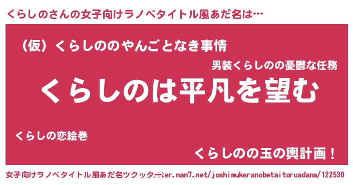 | 意味不明あだ名 | 『とにかく怪しいくらしの』 |
