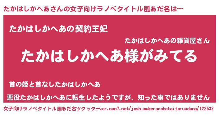 | ヘコむあだ名 | 『たかっ子』『たかはしかへあ(震え声)』 |