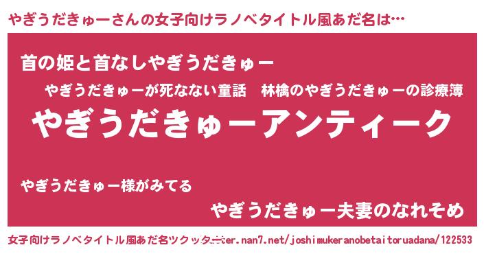 | 意味不明あだ名 | 『自称やぎうだきゅー』 |