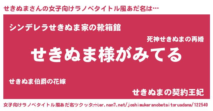 | 男性向けラノベタイトル風あだ名 | 『せきぬまの嫁は女の子じゃないと思った?』 |