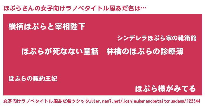 | 男性向けラノベタイトル風あだ名 | 『魔弾の王とほぷら』『緋弾のホプラ』 |