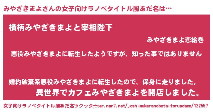 | 意味不明あだ名 | 『住所不定無職みやざきまよ(12歳)』 |