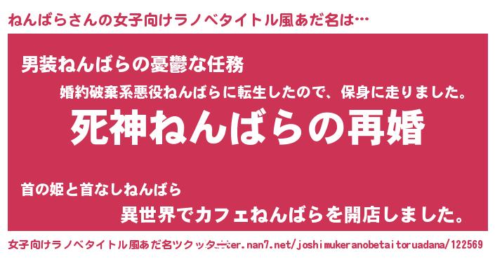 | 男性向けラノベタイトル風あだ名 | 『ノーゲーム・ノーネンバラ』 |