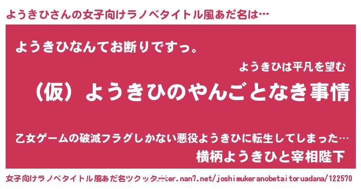 | 男性向けラノベタイトル風あだ名 | 『ようきひの憂鬱』『魔弾の王とようきひ』 |