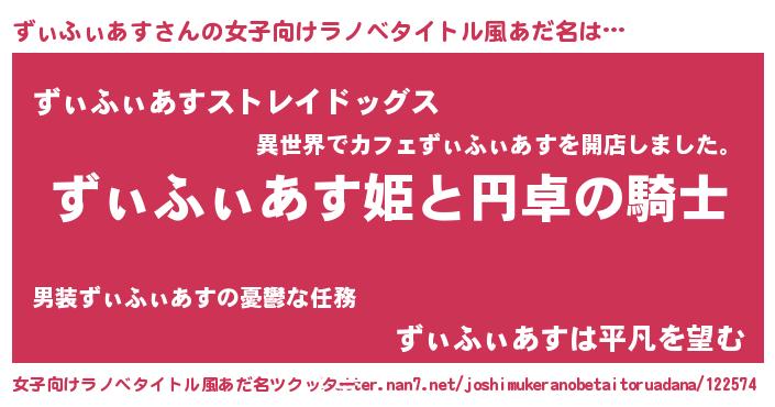 | 男性向けラノベタイトル風あだ名 | 『ズィフィアスアートオンライン』 |