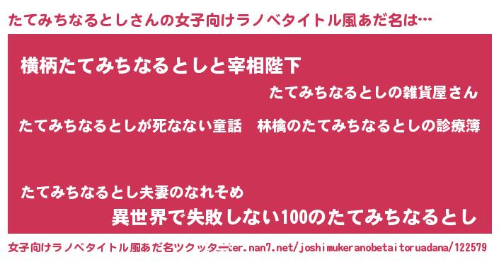 | 男性向けラノベタイトル風あだ名 | 『魔弾の王とたてみちなるとし』 |