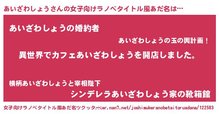 | 男性向けラノベタイトル風あだ名 | 『誰もが恐れるあのあいざわしょうが、ぼくの専属メイドになるようです。』 |