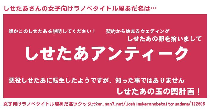 | 胡散臭い通販商品みたいなあだ名 | 『テレビで話題のアガリクス…その名も「しせたあ」』 |