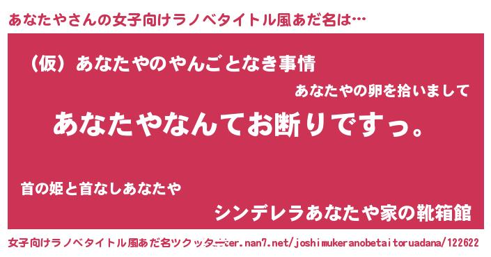 | 意味不明あだ名 | 『自称あなたや』『ペロリンあなたや』 |