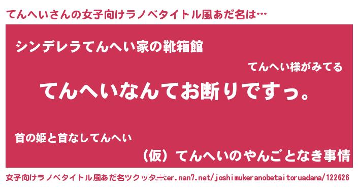 | 男性向けラノベタイトル風あだ名 | 『魔法科高校のてんへい』 |