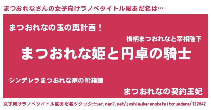 | 男性向けラノベタイトル風あだ名 | 『まつおれなの憂鬱』 |