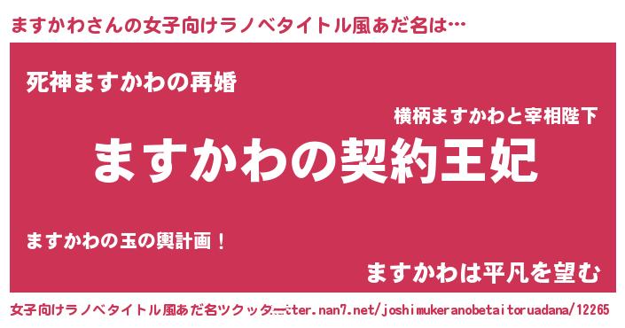 | 胡散臭い通販商品みたいなあだ名 | 『来世でも幸せになれる水素水…その名も「ますかわ」』 |