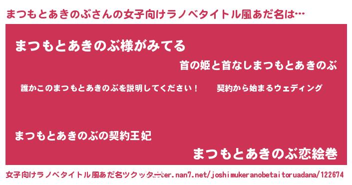 | 男性向けラノベタイトル風あだ名 | 『マツモトアキノブアートオンライン』 |
