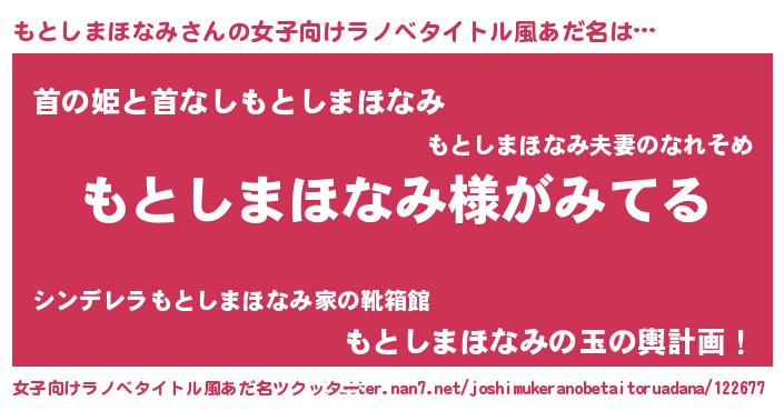 | 意味不明あだ名 | 『とにかく怪しいもとしまほなみ』 |