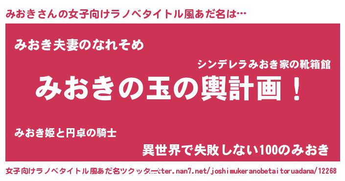 | 男性向けラノベタイトル風あだ名 | 『転生したらみおきだった件』 |
