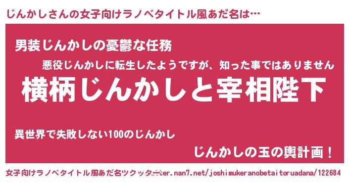 | 胡散臭い通販商品みたいなあだ名 | 『あなたにだけ特別に提供する100年もののヴィンテージワイン…その名も「じんかし」』 |