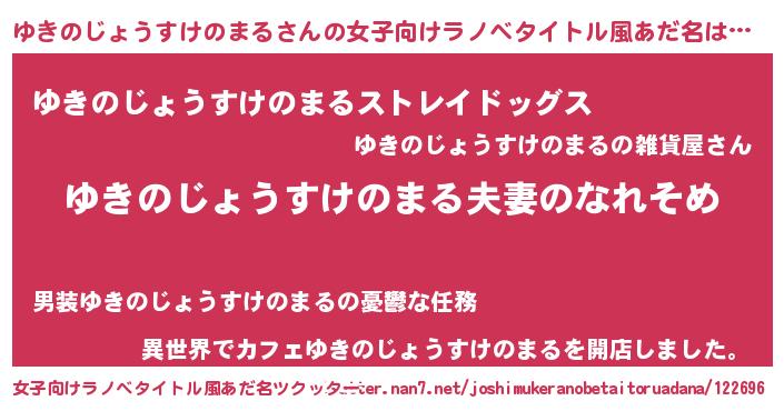 | 男性向けラノベタイトル風あだ名 | 『おまえをオタクにしてやるから、俺をゆきのじょうすけのまるにしてくれ! 』 |