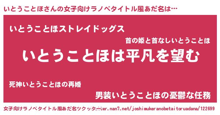 | 男性向けラノベタイトル風あだ名 | 『ダンジョンにいとうことほを求めるのは間違っているだろうか』 |