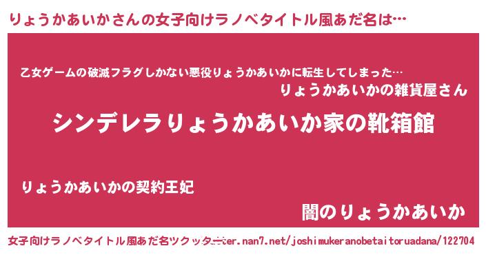 | 男性向けラノベタイトル風あだ名 | 『緋弾のリョウカアイカ』 |