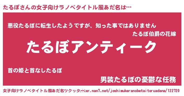 | 胡散臭い通販商品みたいなあだ名 | 『テレビで話題の高麗人参…その名も「たるぼ」』 |