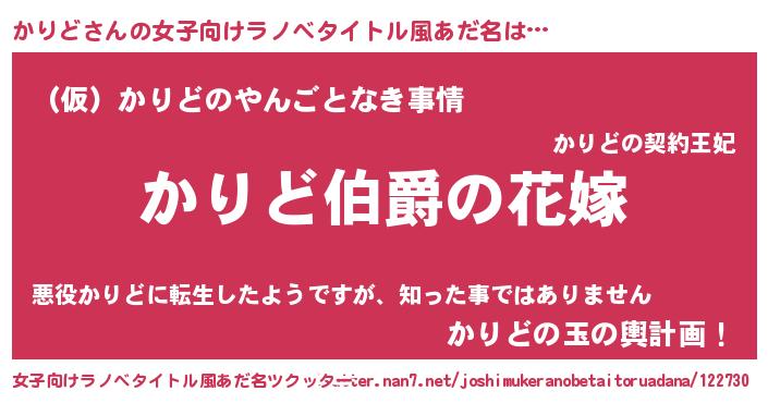 | 男性向けラノベタイトル風あだ名 | 『やはりかりどの青春ラブコメはまちがっている 』 |