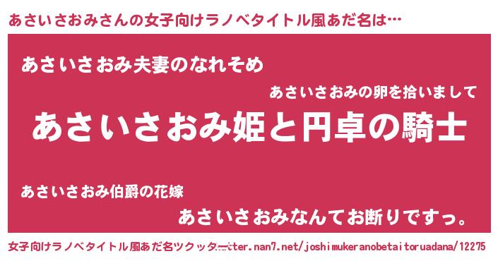 | 胡散臭い通販商品みたいなあだ名 | 『モテモテ間違いなし霊験あらたかなお札…その名も「あさいさおみ」』 |
