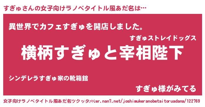 | 男性向けラノベタイトル風あだ名 | 『すぎゅに滅ぼされるだけの簡単なお仕事です』 |