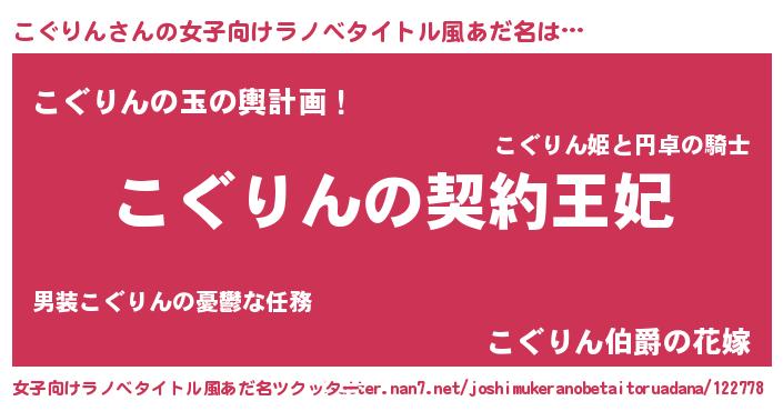 | 胡散臭い通販商品みたいなあだ名 | 『来世でも幸せになれる健康食品…その名も「こぐりん」』 |