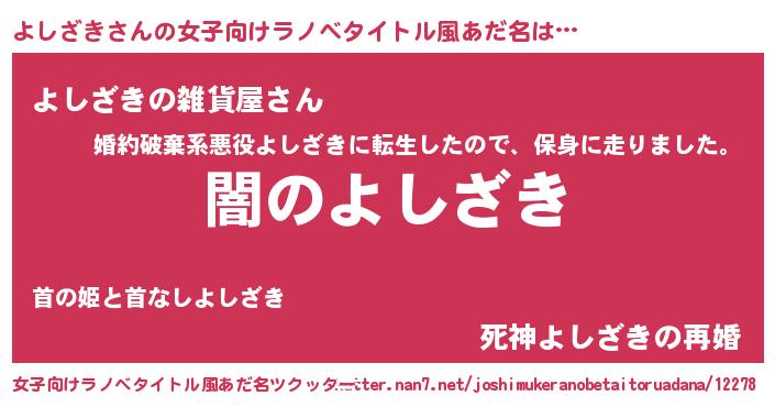 | 男性向けラノベタイトル風あだ名 | 『Re:よしざきから始める異世界生活』 |