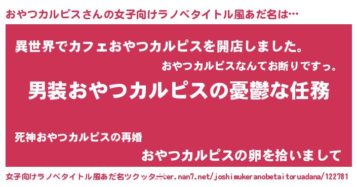 | 男性向けラノベタイトル風あだ名 | 『うちのおやつカルピスが世界を掌握している!』 |