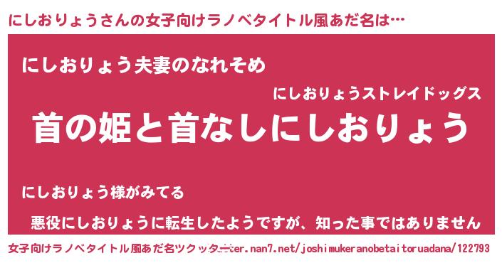 | 男性向けラノベタイトル風あだ名 | 『はたらくにしおりょうさま!』 |