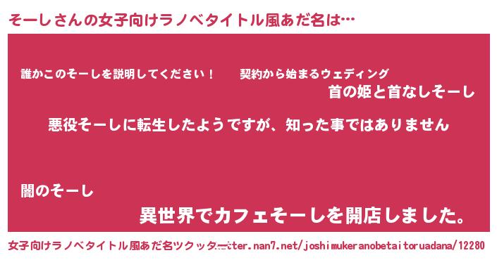 | 胡散臭い通販商品みたいなあだ名 | 『あなたにだけ特別に提供する100年もののヴィンテージワイン…その名も「そーし」』 |