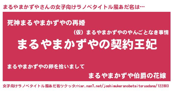 | 男性向けラノベタイトル風あだ名 | 『誰もが恐れるあのまるやまかずやが、ぼくの専属メイドになるようです。』 |